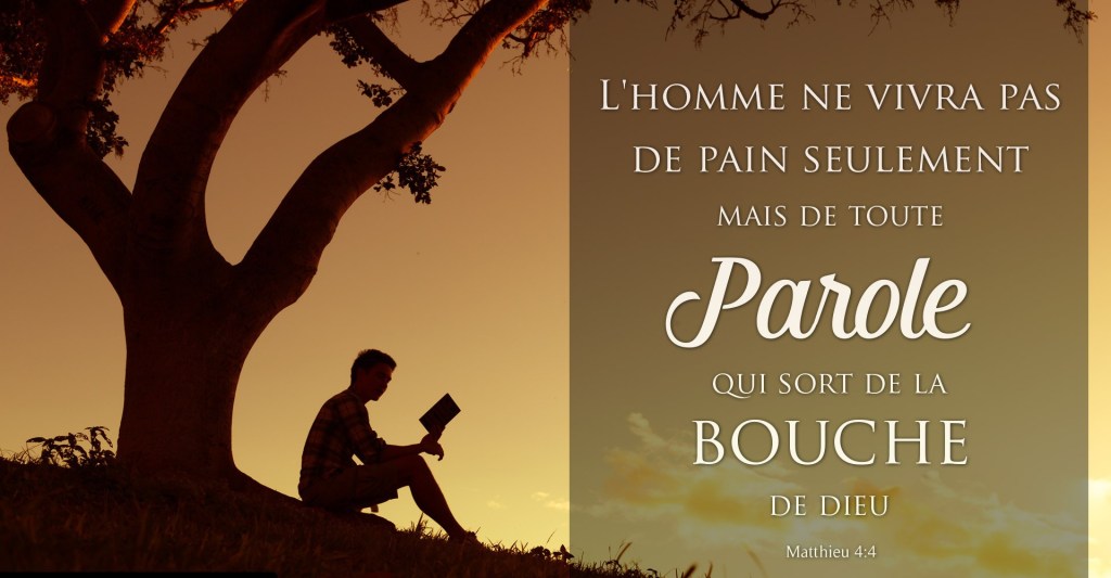 Jésus répondit : Il est écrit : L’homme ne vivra pas de pain seulement, mais de toute parole qui sort de la bouche de Dieu. Matthieu 4:4