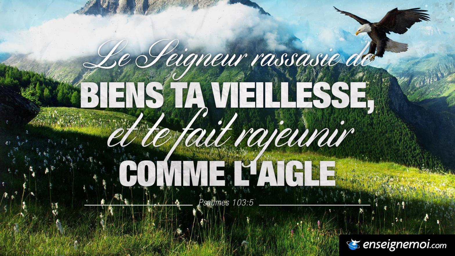 C’est lui qui rassasie de biens ta vieillesse, qui te fait rajeunir comme l’aigle. Psaume 103:5